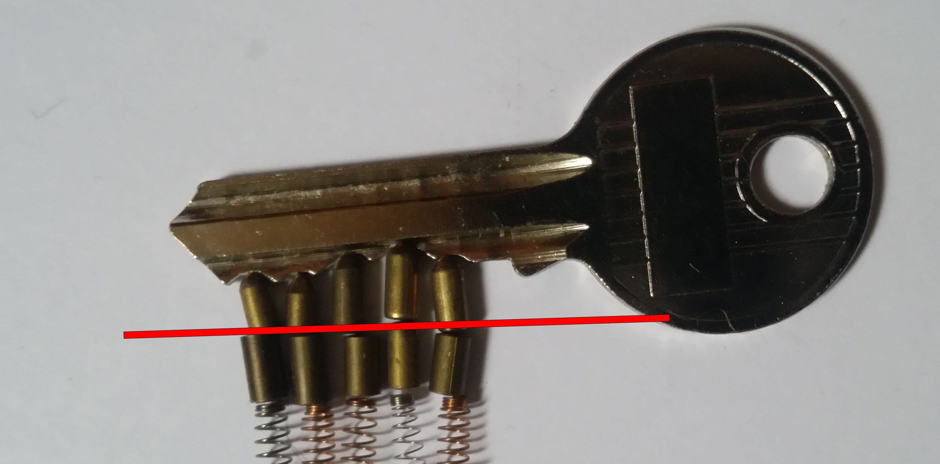 Il s’agit ainsi pour le serrurier de faire descendre les goupilles passives une à une dans le stator à l’aide du crochet, libérant peu à peu l’entrave du rotor. Une fois le rotor libre de tourner, reste enfin à lui faire effectuer une ou deux rotations complètes, pour permettre au panneton de rétracter le(s) pêne(s). Votre porte est ainsi déverrouillée !