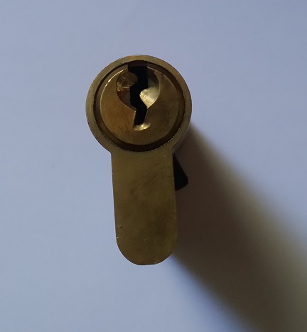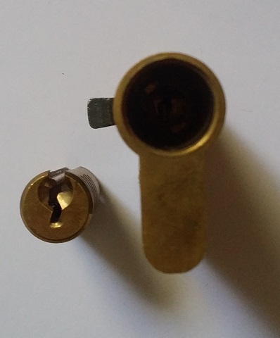 Les cylindres à goupilles sont composés de 2 éléments principaux : une partie fixe appelée « stator », solidarisée à la porte par une vis et une partie mobile, appelée « rotor » dans laquelle s’insère la clé. En effectuant un tour complet, le rotor entraîne le « panneton » (en noir sur la photo) lequel permet de rétracter le(s) penne(s) de la serrure, et donc de désolidariser la porte de ses montants.