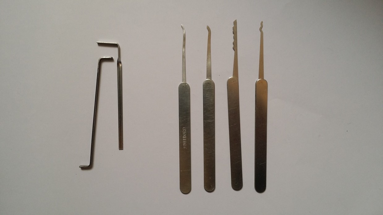 Deux types d’outils outils sont nécessaires. L' »entraîneur » permet d’appliquer une légère rotation au rotor que les goupilles passives viennent alors entraver. Le crochet palpeur permet quant à lui d’appliquer une pression sur chacune des goupilles actives une à une. Certains crochets ont une forme particulière destinée à compresser plusieurs goupilles actives simultanément par un mouvement de « raclage ».