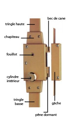 Pour serrure à larder Pêne dormant et demi-tour.