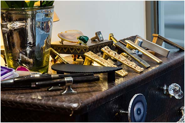 Dans une ambiance feutrée et raffinée, la meilleure sélection de poignées de portes, boutons de meubles, tringles à rideaux, et accessoires.